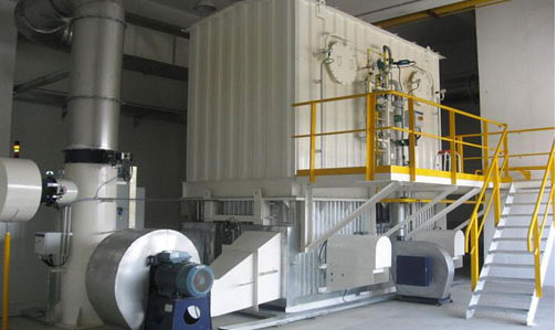 净化后的高温废气离开氧化室,进入蓄热室B,释放热量,温度降低后由排气风机经烟囱向空排放。而蓄热室B的陶瓷蓄热体吸热,贮存大量的热量(用于下个循环加热废气)。